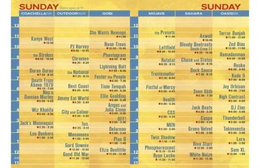 HERE ARE TIMES FOR SUNDAY'S SHOWS!!! THE REST OF THE TIMES ARE ON COCHELLA'S WEBSITE.